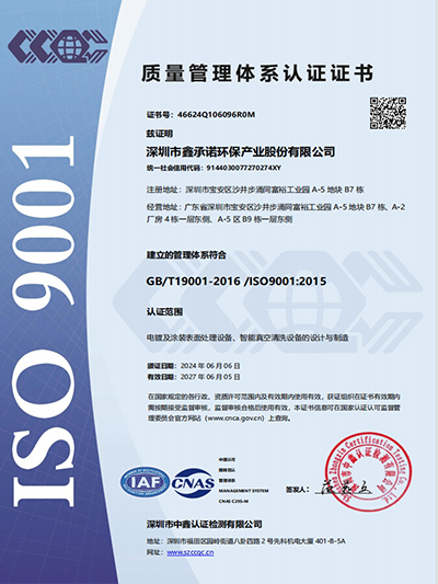 鑫承諾-ISO 質(zhì)量管理體系認(rèn)證證書