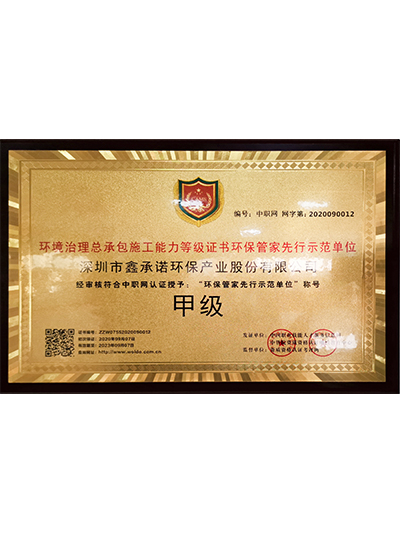 鑫承諾-“環(huán)保管家先行示范單位”甲級稱號
